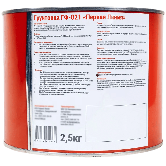 Грунтовка ГФ-021 Первая Линия Красно-коричневый 25кг /22