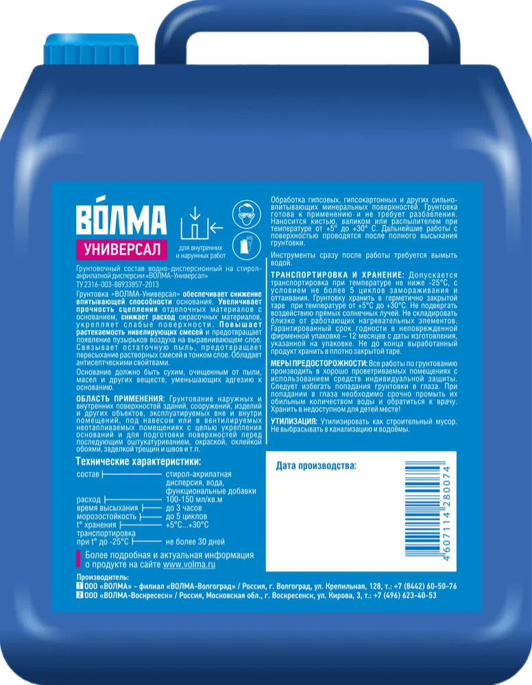 Грунтовочный состав водно-дисп.Волма-универсал 10л